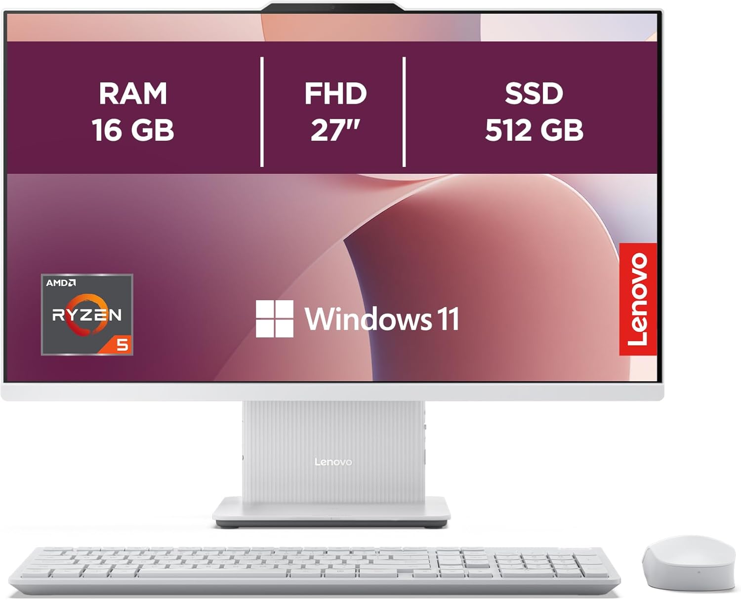 Scopri Lenovo IdeaCentre All-In-One 27″ FHD: potenza Ryzen 5 e 16GB di RAM per lavorare e divertirti in grande, con velocissimo SSD da 512GB