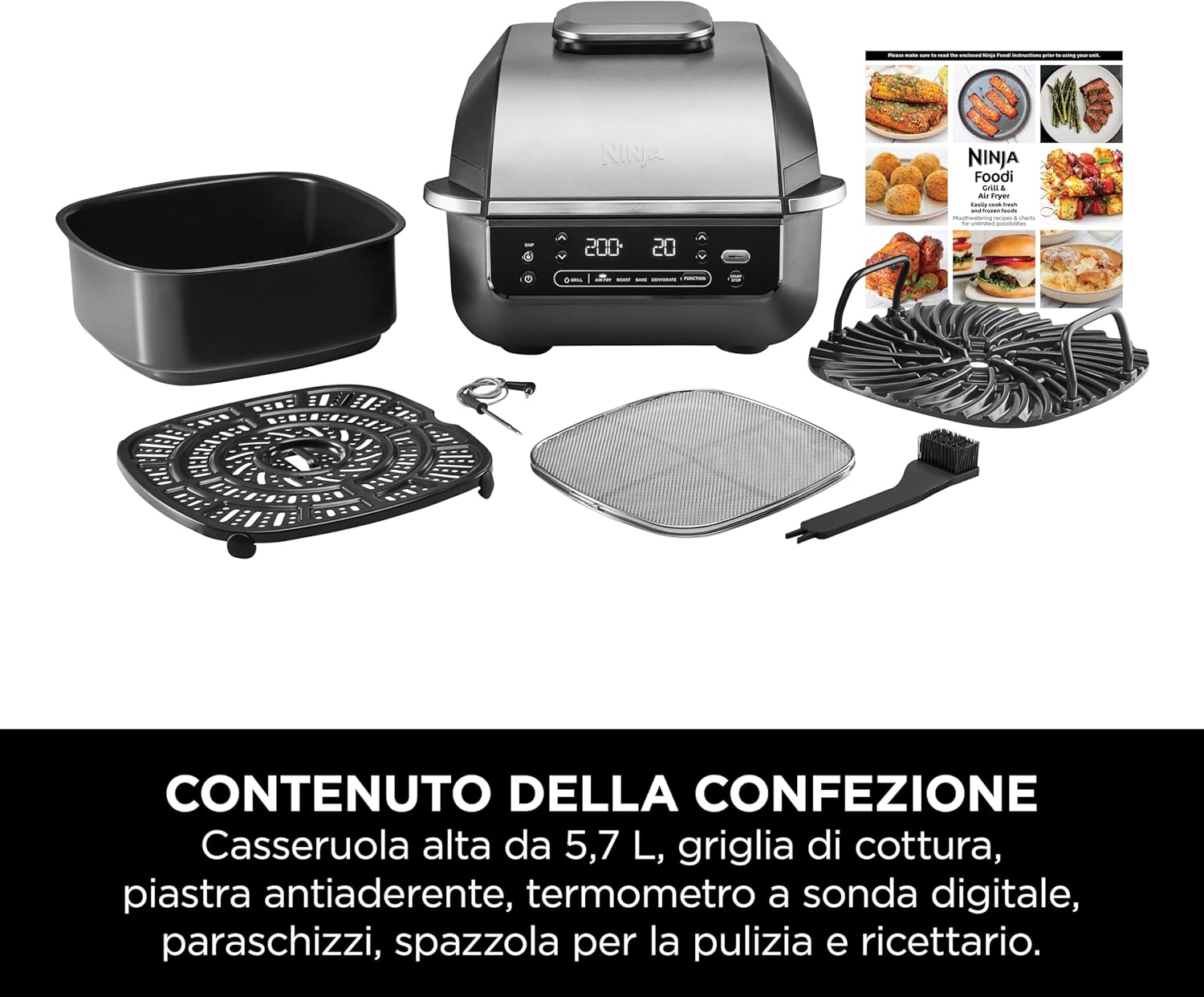 Scopri Ninja Griglia e Friggitrice ad Aria 5 in 1: 5 funzioni di cottura per piatti croccanti e gustosi con meno grassi e massimo sapore